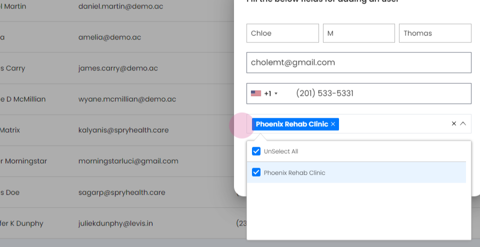 Step 4: Choose the clinics where the new user should be visible.