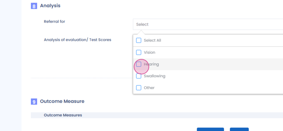 This form is outcome-centric, so you'll find many outcome measures listed.