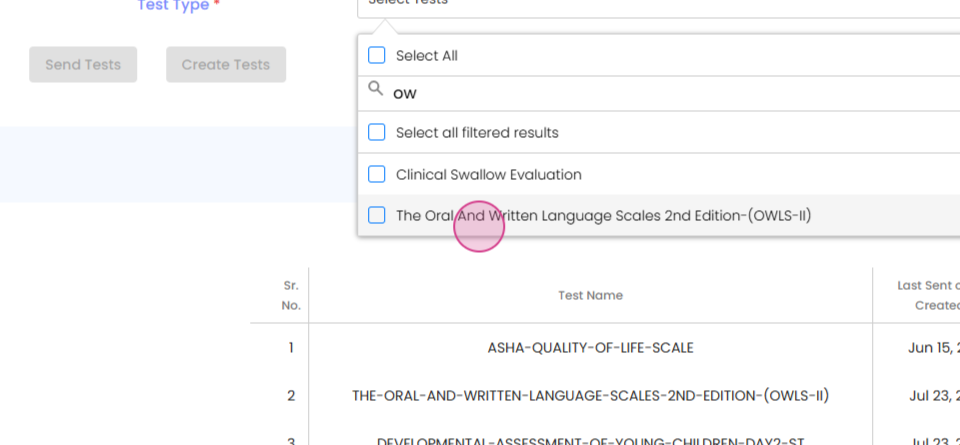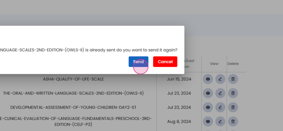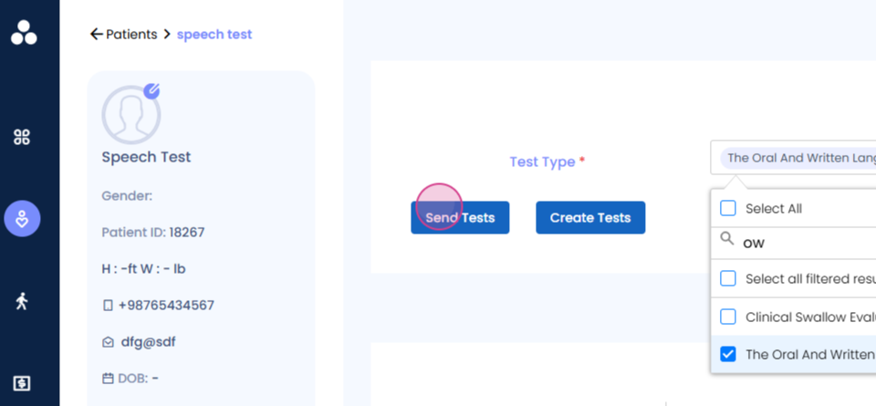 You're then able to send the test to the patient.