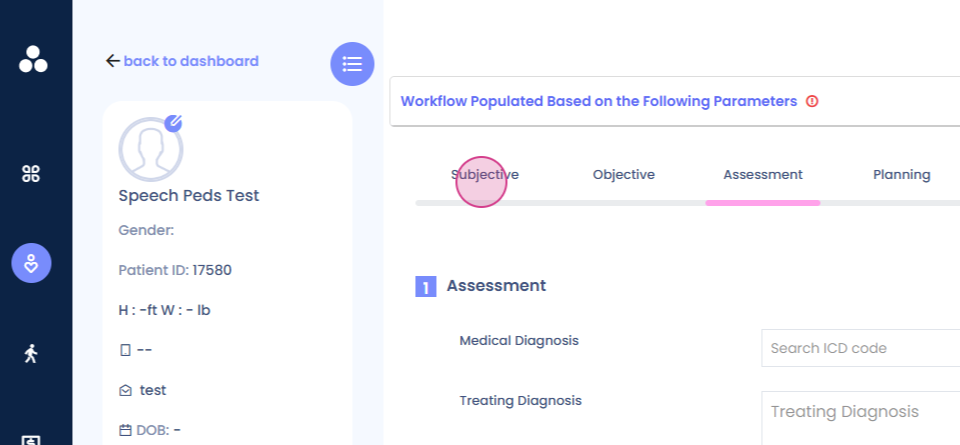 Now, let's move on to the subjective section of a pediatric speech workflow.