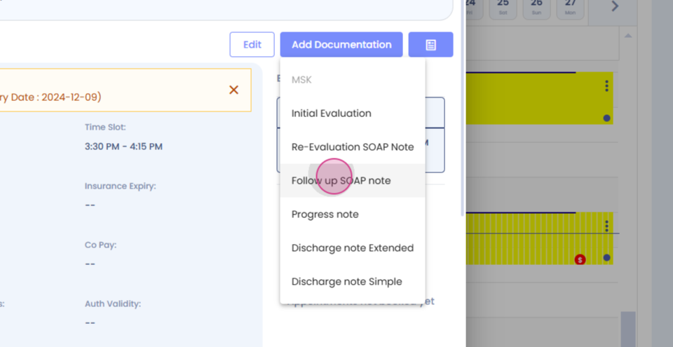 Step 2: In addition to the appointment card, also check for alerts on the soap documentation.