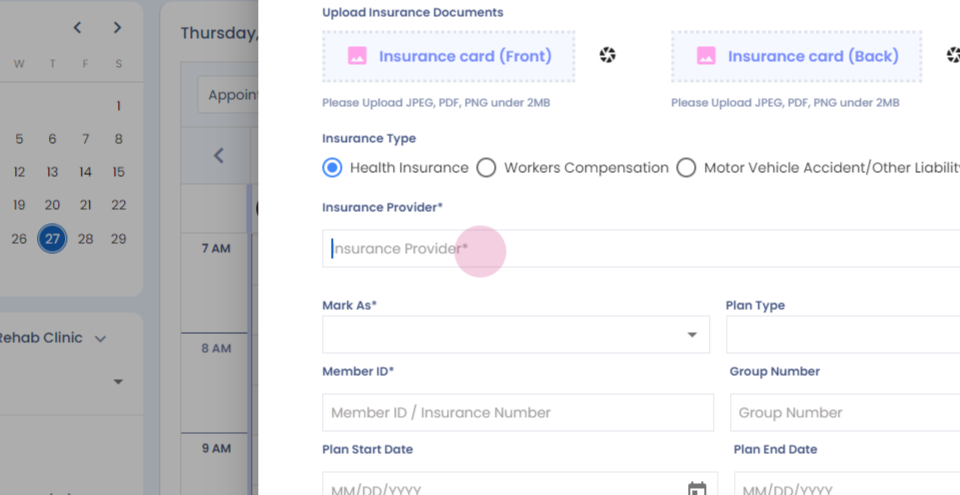 Step 1: Hi. How to book an appointment for a commercial insurance pay patient? Left click on the calendar.