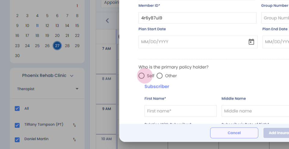 Step 21: Fill in all the mandatory sections, Select the policy holder.