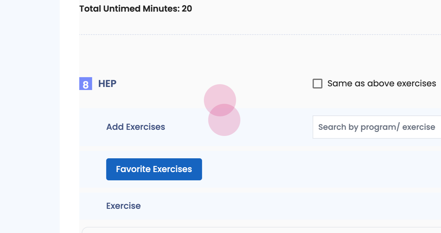 Step 1: Assign HEP. Assign HEP to your patient from documentation workflow within plan section.
