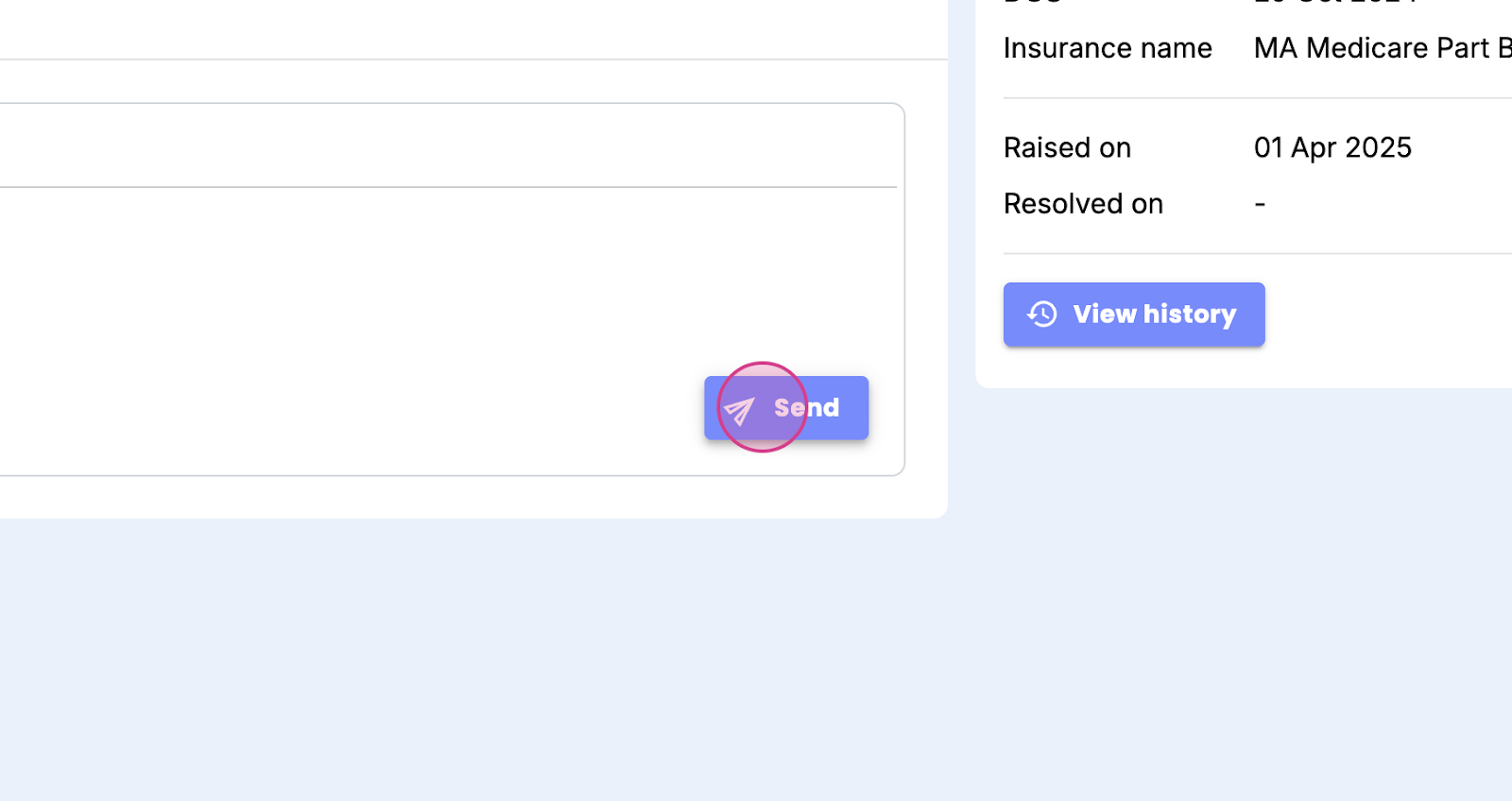 Your reply will be sent from here. You'll see the ticket details and history. With Claim Assist, getting answers to insurance-related queries is easy. Thank you.