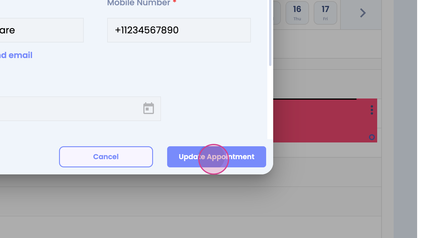 Step 1: Schedule your patient on the calendar. Make sure to input their email address and phone number.