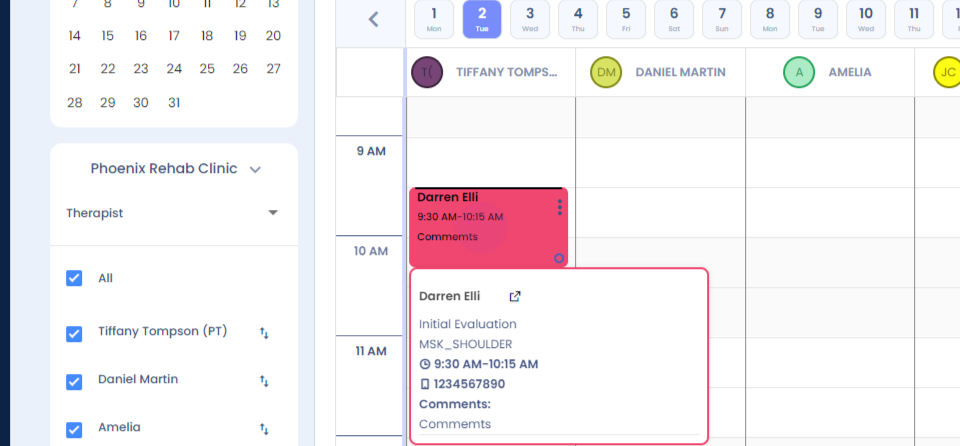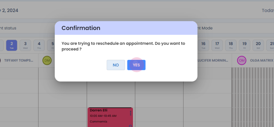 Step 2: Right click. The cursor opens up. You can simply drag and drop the appointment in the other therapist coloumn. Click on yes, and your therapist will be updated.