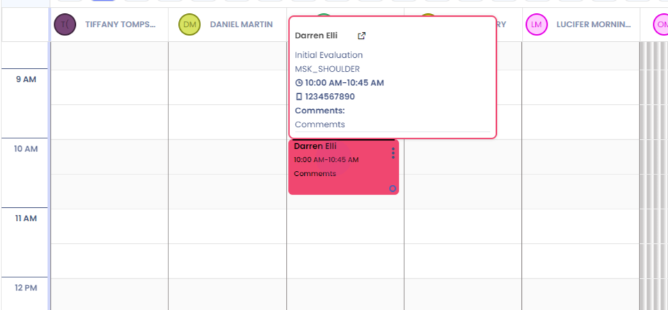 Step 3: To change the timing of the appointment, right click, drag, and drop it in the required time slot.