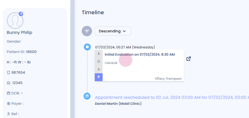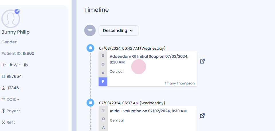 Step 4: This way, you will reach the patient timeline. Now you can go to the SOAP note.