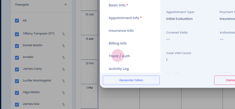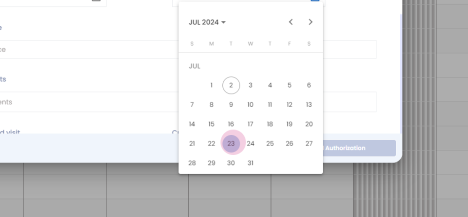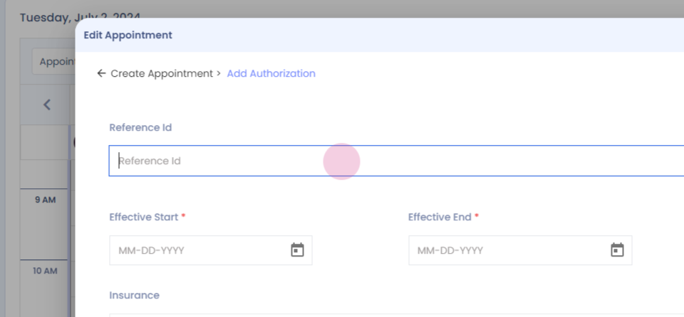 Step 1: Hi. How to add an authorization for a patient? Click on the appointment type.