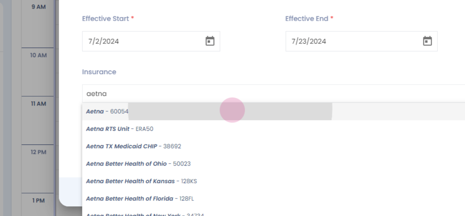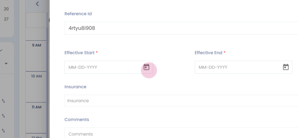 Step 6: Select the start date, select the end date, Select the insurance provider.