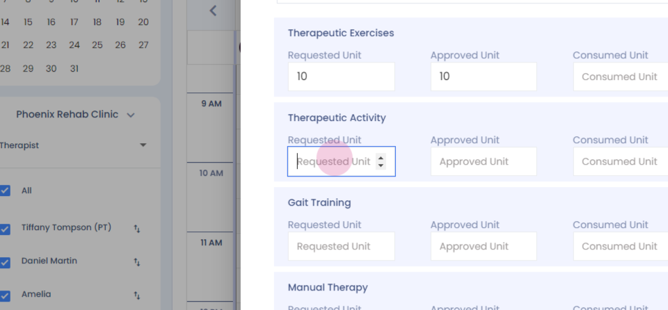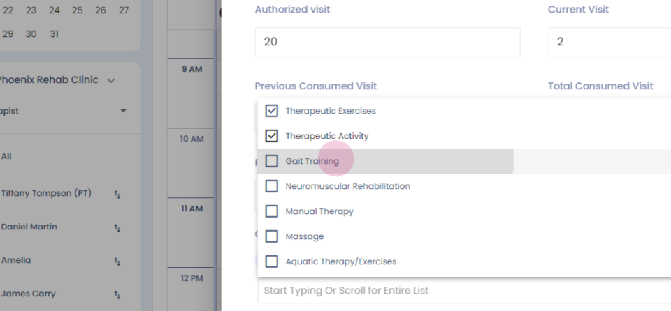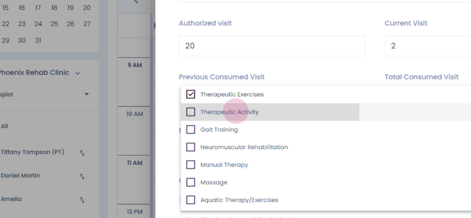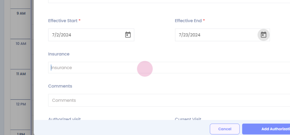 Add authorization, and you will be able to view your authorized visits along with the number of CPT codes approved.