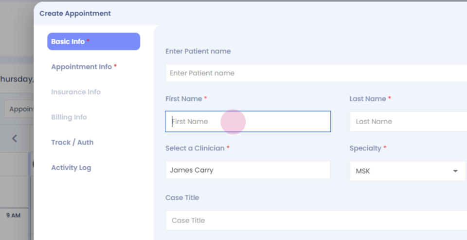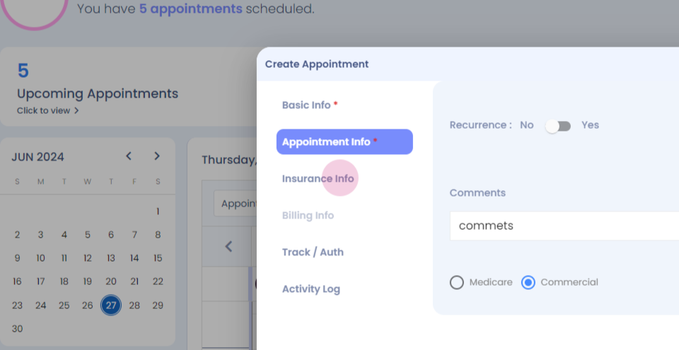 Step 13: You have your insurance info tab here, which lets you add an insurance card of the patient while booking the appointment.