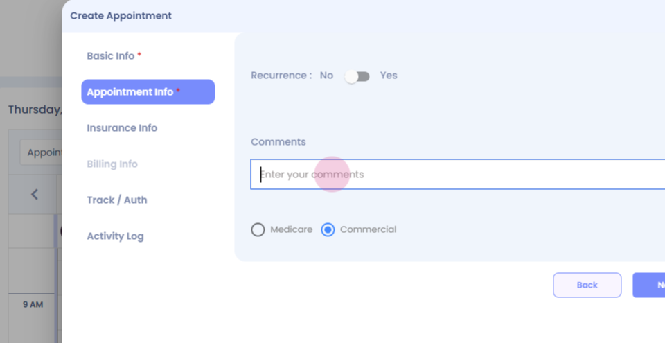 Step 12: You can add specific comments associated to the appointment.