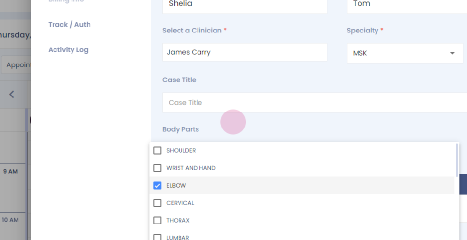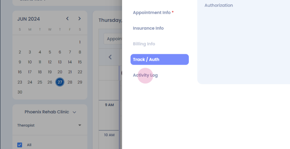 Step 14: The billing info section becomes active once the appointment is booked. The tracking and authorization section allows you to add prior auths and authorizations received for the plan plan of care.