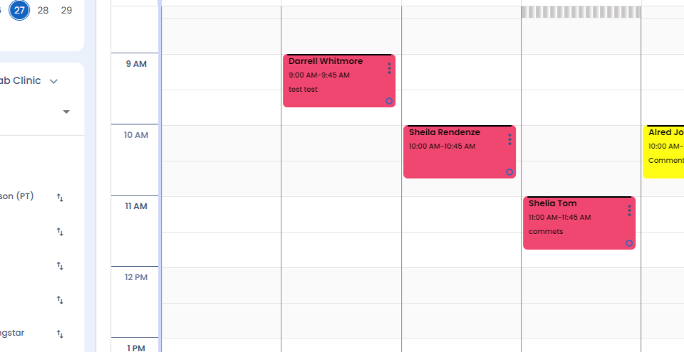 Step 16: Once you click on send link and reserve appointment, your appointment will be booked successfully, and you will be able to also view the comments that you have entered on the hover and on the appointment card.