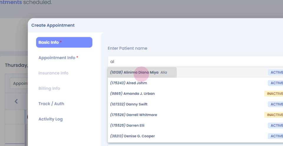 Step 17: To book an appointment for an existing patient, right click, search for the patient, Verify the details.