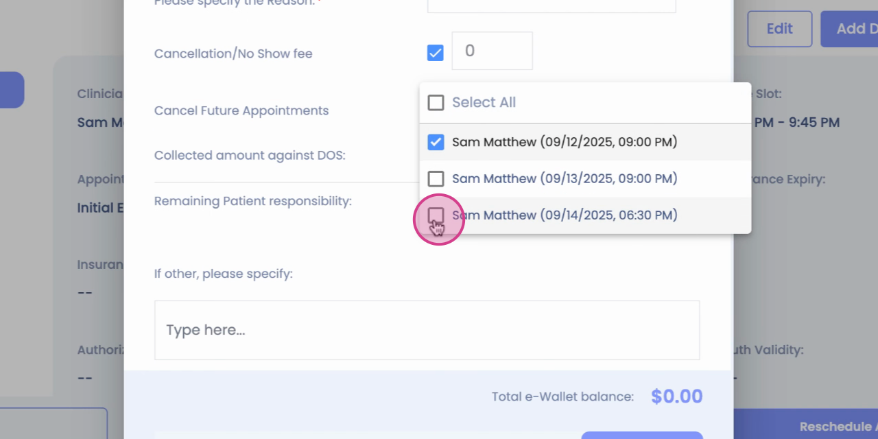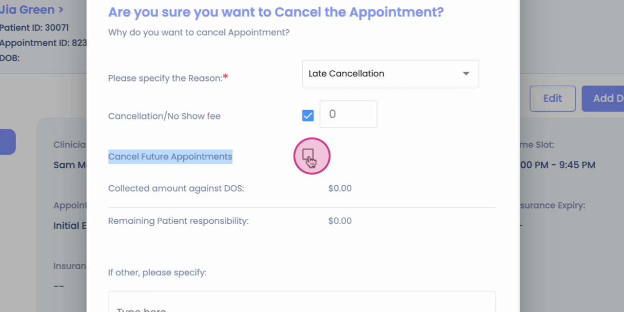Step 6: Click on Cancel the future appointments.