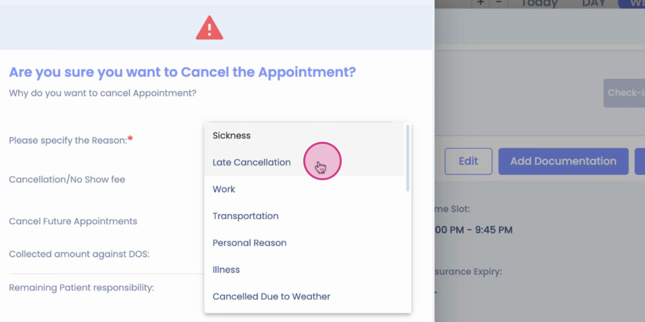 Step 3: Click on Cancel appointment. A purple dialog box will appear.