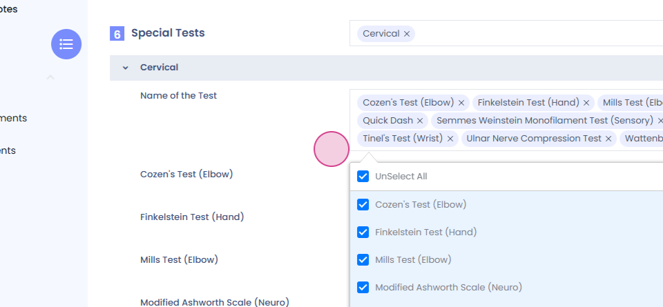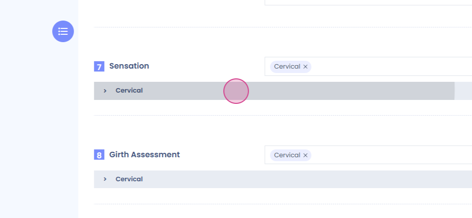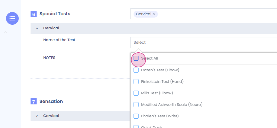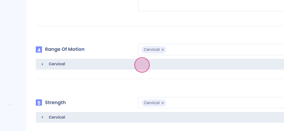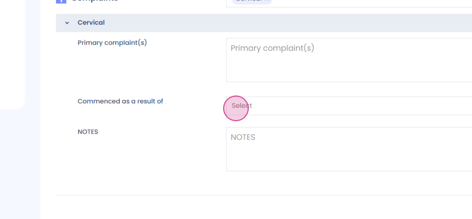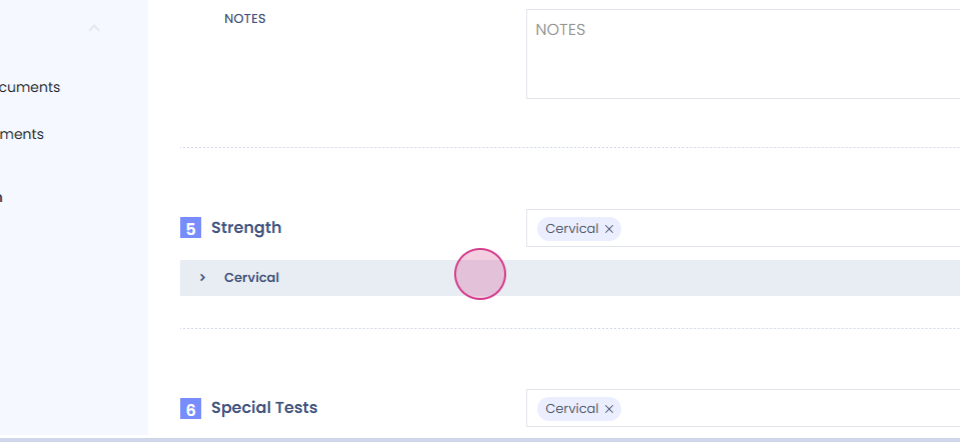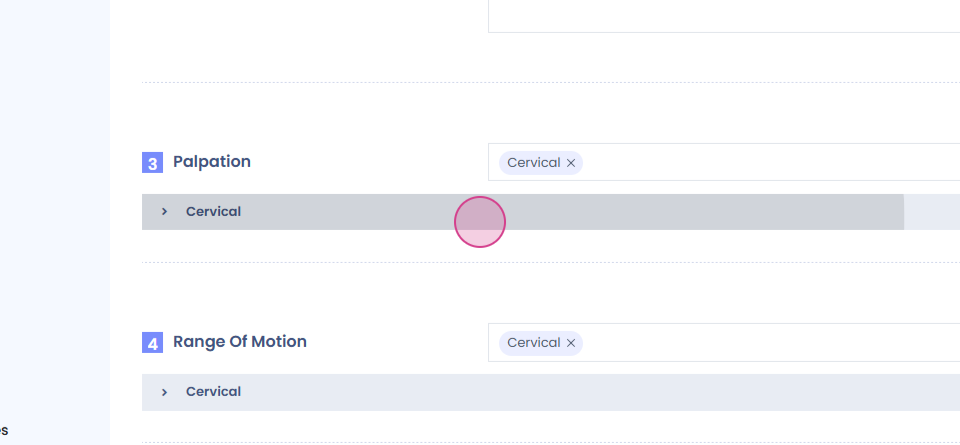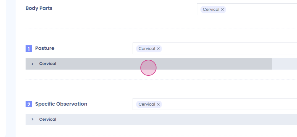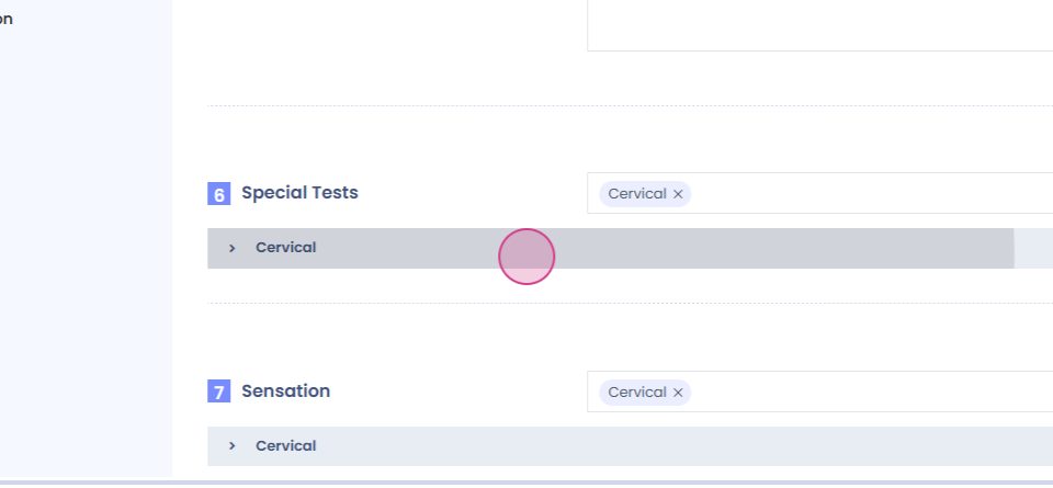 Step 1: Begin with the Subjective section. Here, you'll need to select a body part for assessment. In this example, we're selecting the cervical region.