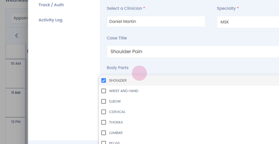Step 4: Select the body part.
