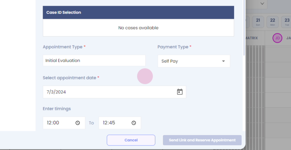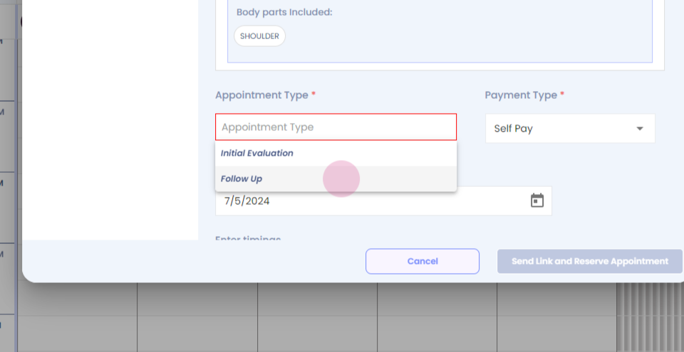 Step 55: Click on sending a reserve appointment.