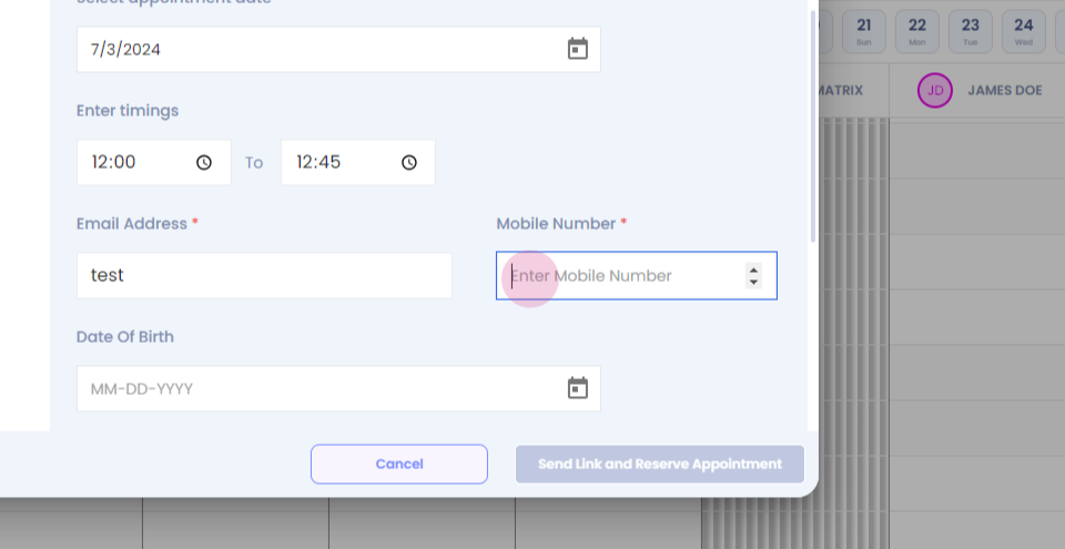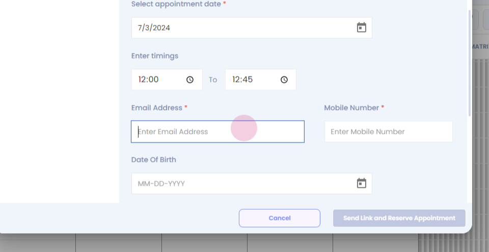 Step 33: Fill in the mandatory details. Click on send link and reserve appointment.