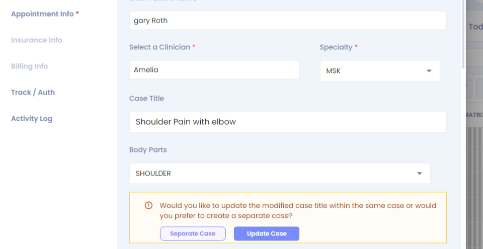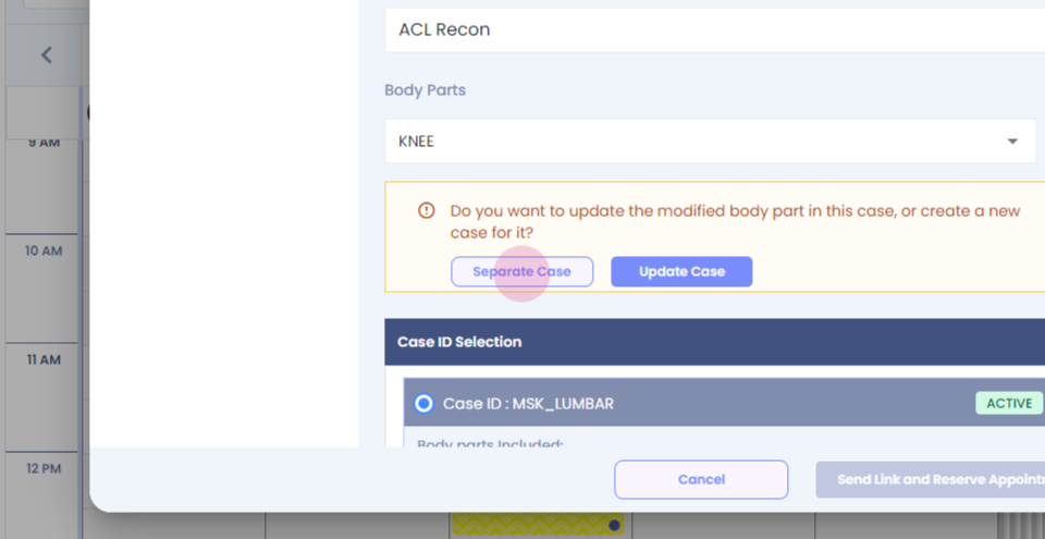 Step 18: To merge cases for a patient for an existing patient, left click.