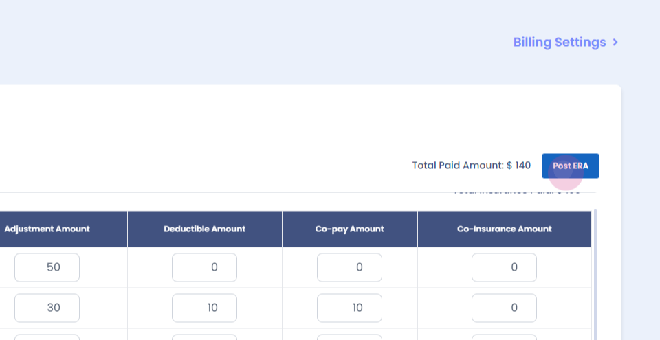Step 16: Once all errors are resolved, click on the "Post ERA" button. If nothing is entered for a specific CPT code, the entire billed amount will be adjusted.