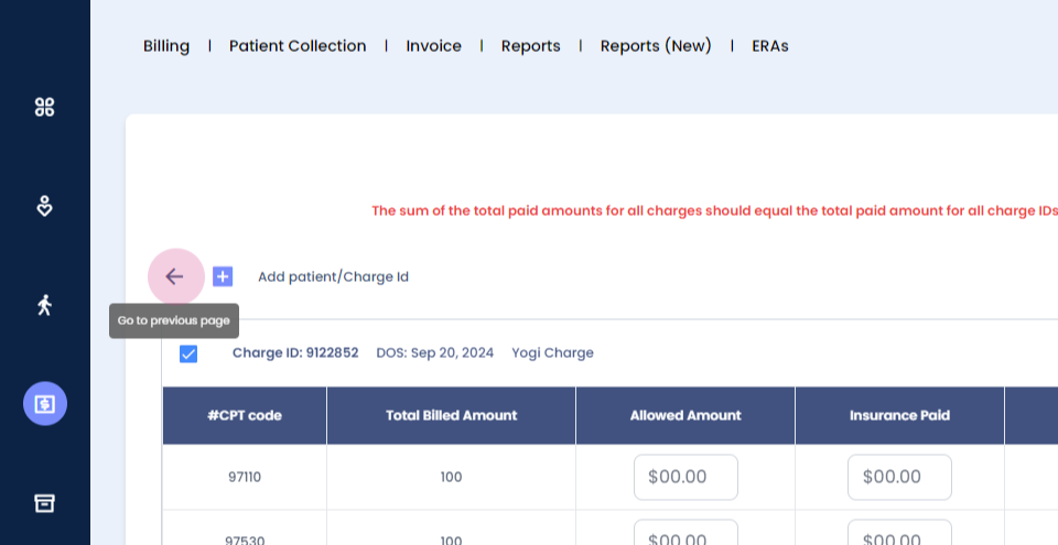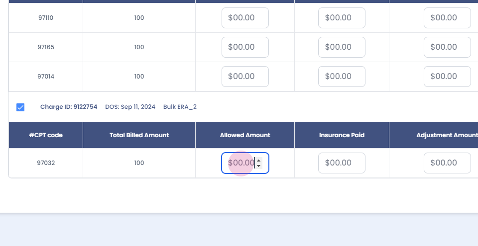 Step 11: On this screen, view all the CPT details of the selected charge ID. It's also possible to add a charge ID from this screen.