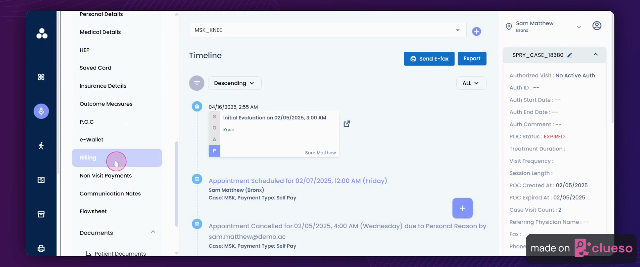 Step 1: Start by selecting a patient whose charges you want to refund. Navigate to the billing screen. Here, you'll see a list of charge IDs for various services.