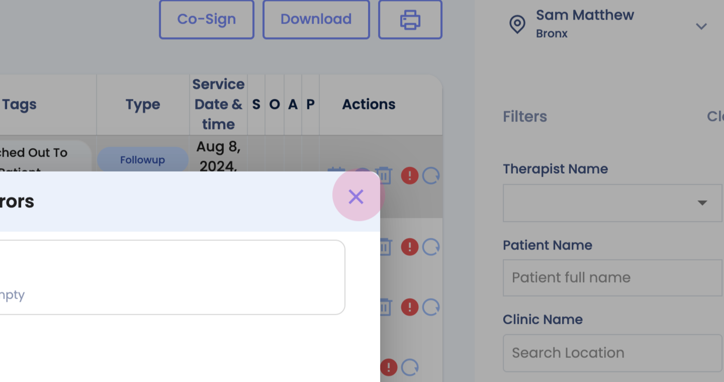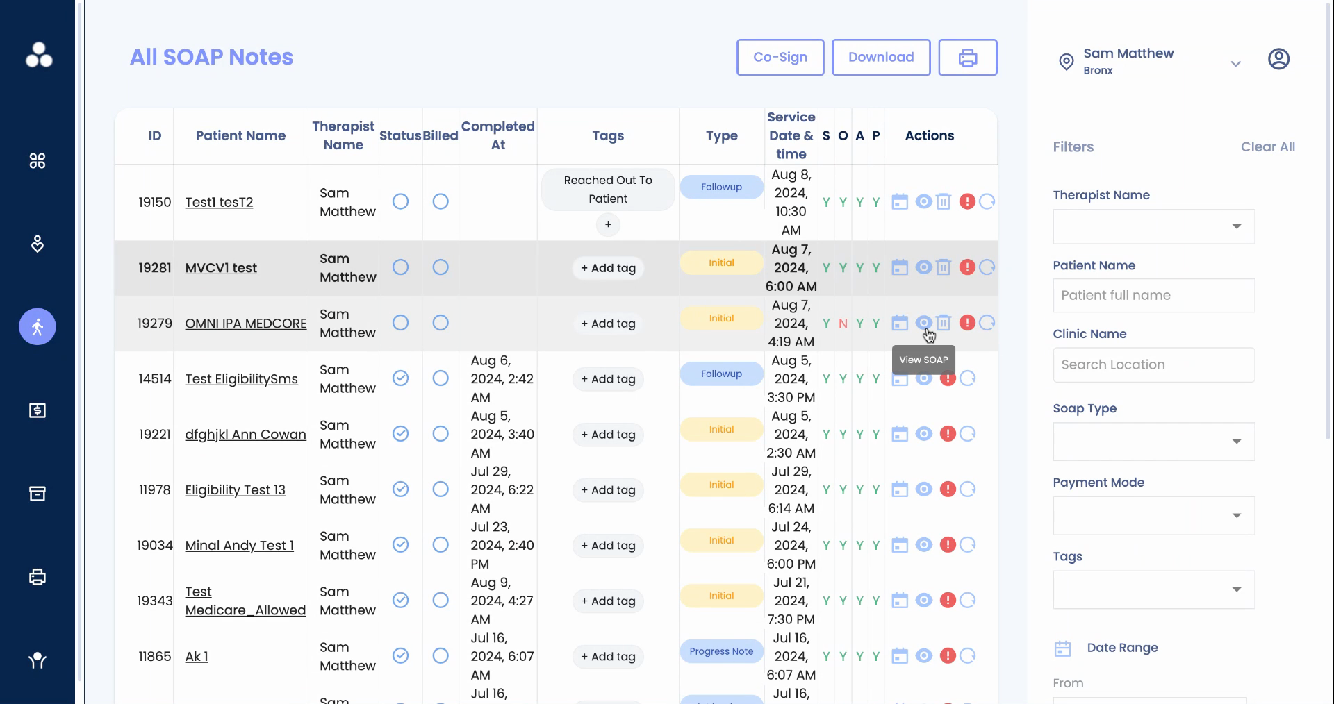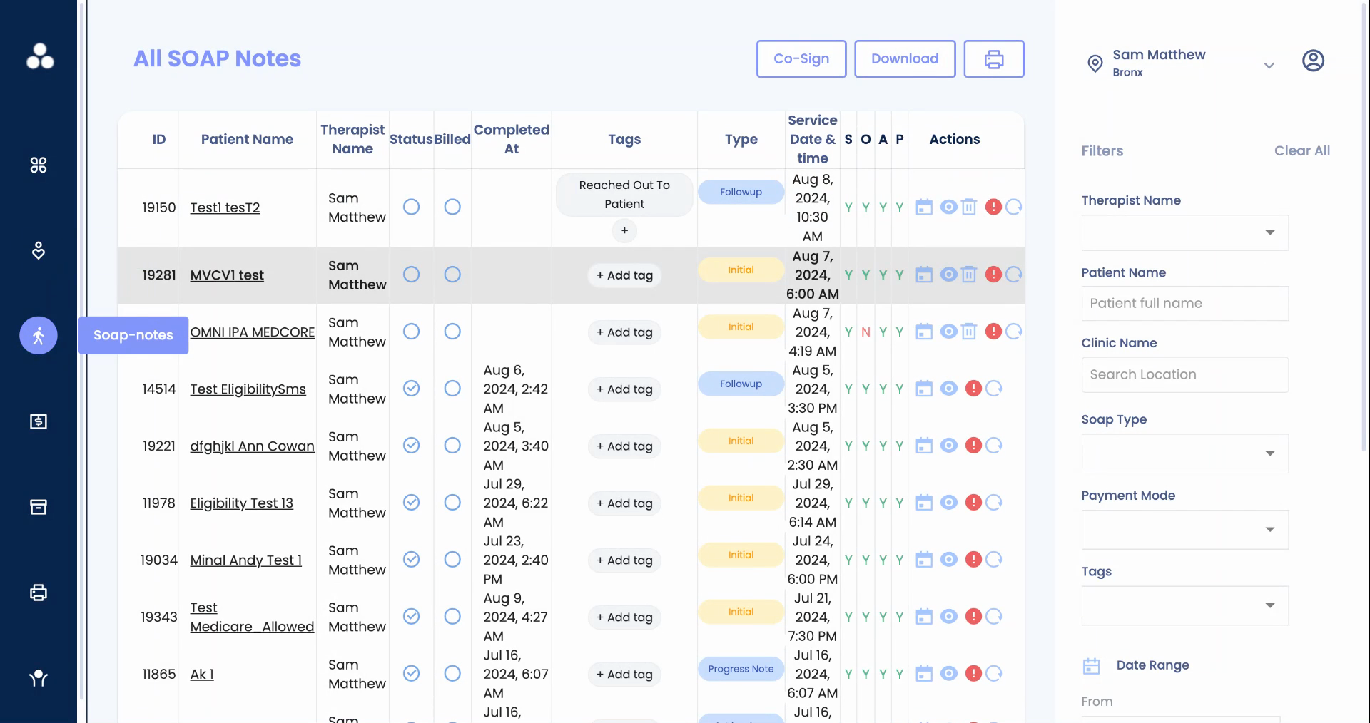 This guide provides a detailed walkthrough of the SOAP notes tab, a staging area for all dates of services. It's a comprehensive tool for tracking SOAP completion status, accessing and editing notes, and monitoring billing and claim submission errors.Start by exploring the SOAP notes tab: