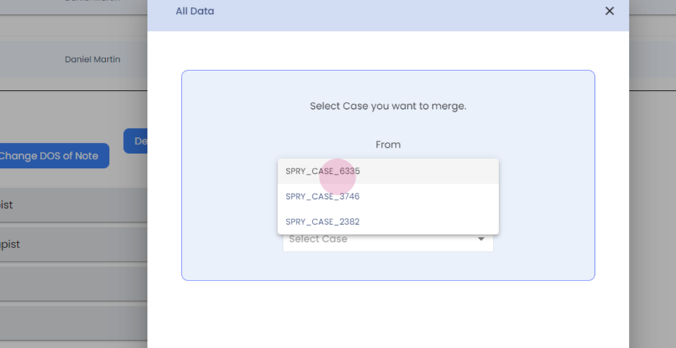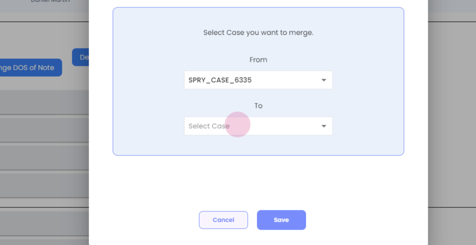 Step 12: So you can select the case number, and you can select which case you would like to merge it with.