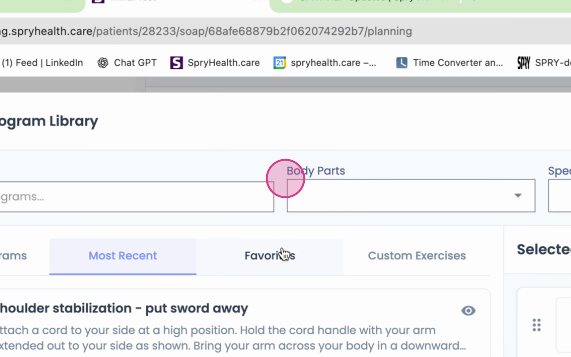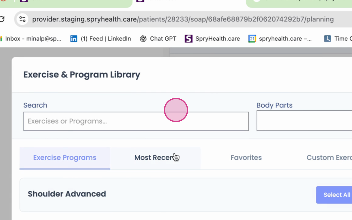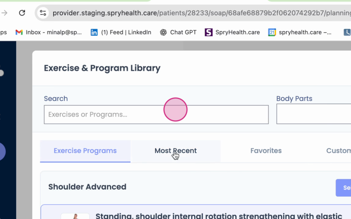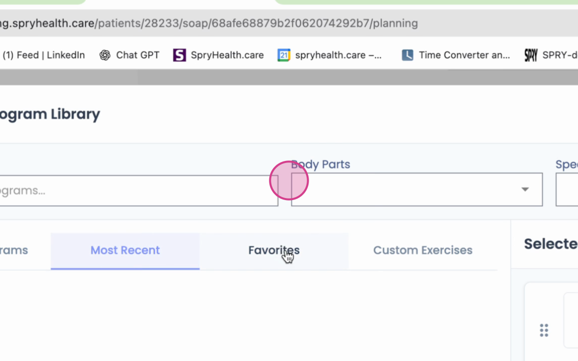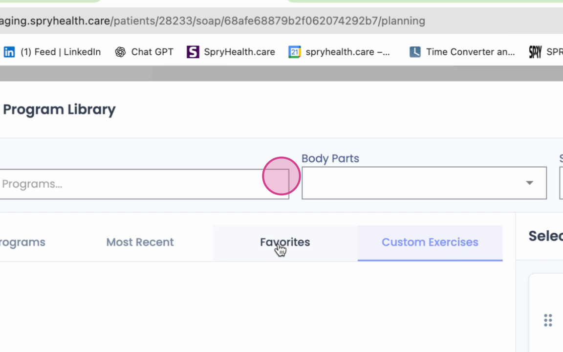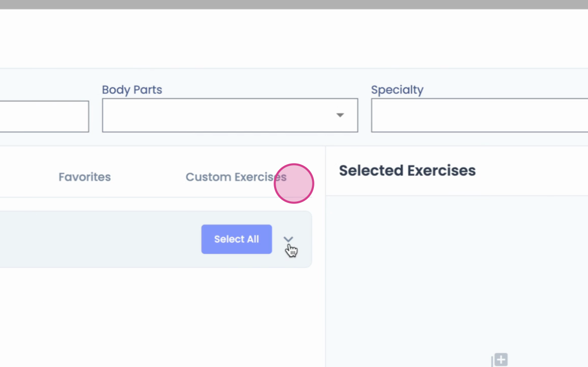 Step 14: Search by programs, most recent favorites, and custom exercises.