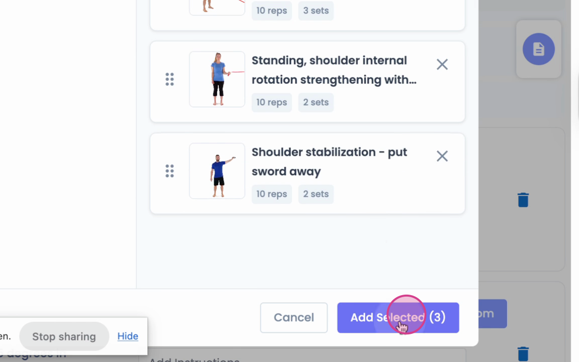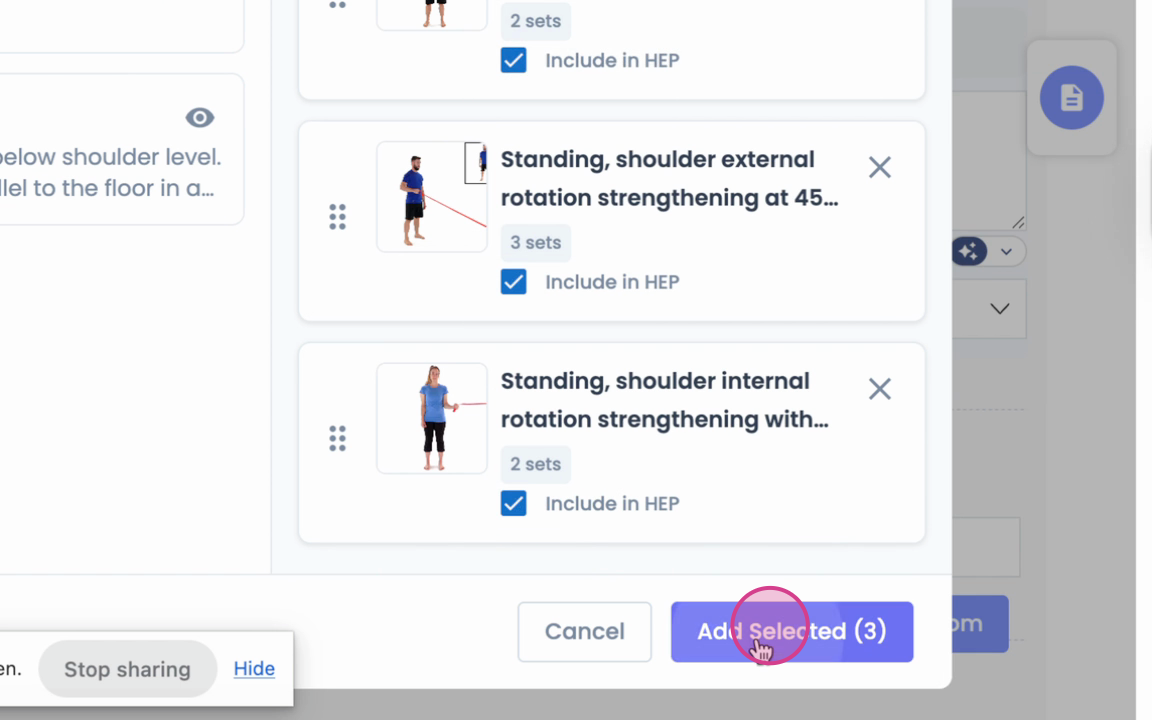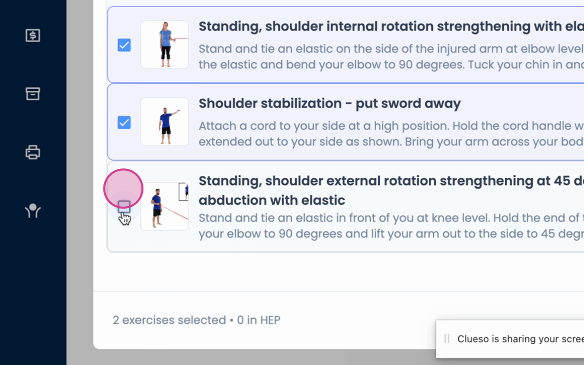Step 13: Apply the same steps for Clinic exercises within the HEP.